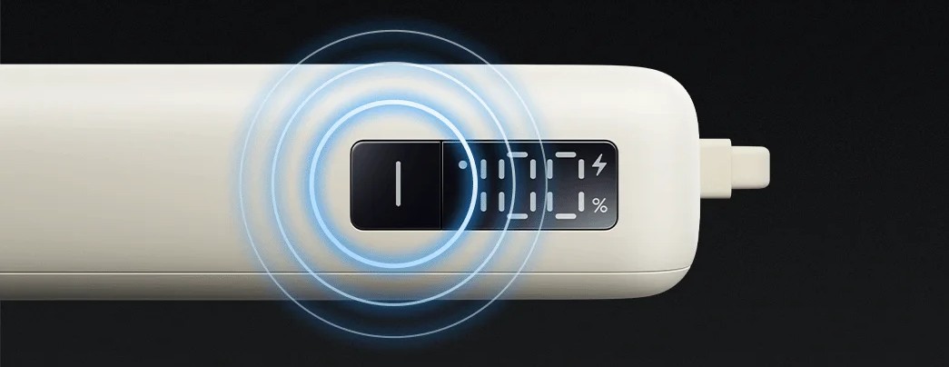 На корпусе предусмотрена кнопка проверки уровня заряда, а встроенный дисплей отображает актуальное состояние аккумулятора. Это упрощает контроль и делает использование более наглядным по сравнению с обычными световыми индикаторами.