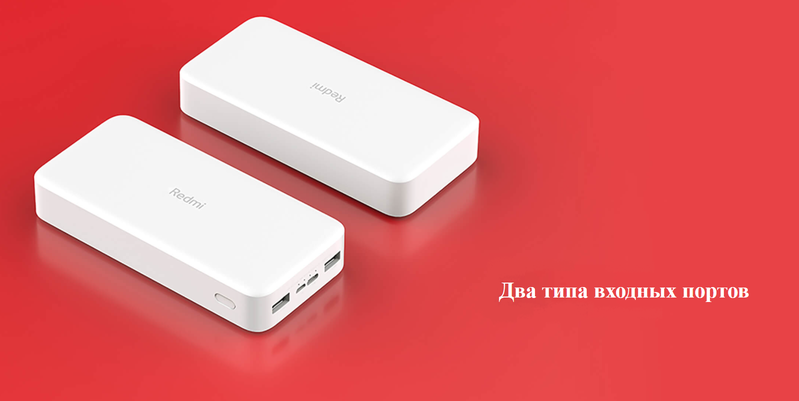 Лучше иметь выбор. Банк питания Redmi Fast Charge емкостью 20 000 мАч имеет два входных порта, USB-C и порт Micro-USB, что делает его полностью совместимым со стандартными кабелями устройств Android и обеспечивает быструю зарядку самого банка питания.