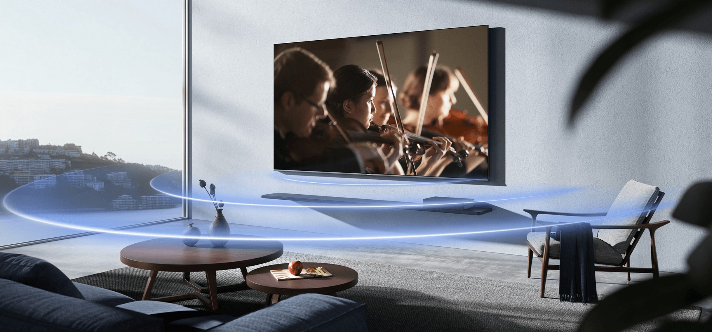 Звуковая система мощностью 30 Вт поддерживает Dolby Atmos и Harman AudioEFX. Динамики выдают чистое и объёмное звучание, а дополнительные алгоритмы оптимизации делают эффект погружения ещё ярче. Телевизор воспроизводит аудио- и видеофайлы с USB-носителей и поддерживает все основные форматы — от MPEG и H.265 до FLAC и OGG.